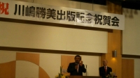 待ちに待った「すい臓がんステージⅣから還ってきた男」が出版された。今日はその出版記念祝賀会。筆者の川嶋勝美さんは、この日がちょうど70才のお誕生日。200人の出席者を前にユーモアを交えて当時の心境を語り、「趣味の釣りで、竜飛沖で102㌔の本マグロを釣った。船上で捌いてマグロの内臓を大量に取って捨てた。その1ヶ月半後に倒れた。今度は私が内臓を6ケ所も手術でゴロゴロッと取られた。がらんどうになっちゃった。マグロの恨み!?」軽妙な語り口に笑い声が起こったが、今でこそである。”余命7ヶ月”の宣告からの11年間の闘病のありさまは想像もできない。だから、この本がある。巻末の”「がんで死なない」「がんにならない」ための60か条”は川嶋さんからの心からのメッセージだ。私の友人もすい臓がんで余命宣告を受けている。明日はこの本を病床に届けよう。