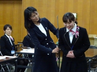 青森県立郷土館の解説員の辞令交付式です。今年度は新人が二人。所長の交代もありました。場所は本町の「つかさ」。アウルは毎年、解説員の研修などを含めた”教育コンサルタント”を請け負っています。それぞれの制服の発注も担当しているので、今年はリボンをリニューアルしてみました。ワンタッチ式で使い勝手も良いようです。また、解説員の採用もアウルのお仕事ですが、あえて19歳から50代までの幅広い年代の方を採用しています。みなさん、とても仲が良く勤勉で年代の差は感じません。制服も素敵なので、まるで女子大生にしか見えません・・・といったら、玉ちゃんから「言い過ぎっ!」という声が飛びました(笑)