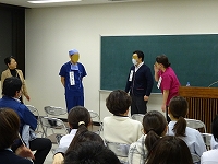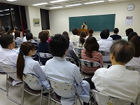 今日は、ある病院での「患者満足度向上のための傾聴力」研修です。大きな病院なので、一度にはできません。2日間にわけての120名。ドクターをはじめに、看護師・外来・事務室・技師の方などユニフォームも手術着あり、緑あり、臙脂ありで、カラフルです。「患者満足度」といっても、実際は病院内で起こりがちなクレーム対応を含んでいます。企業とはまた違うデリケートな側面もあるので、実技を含めて柔らかに病院向けにアレンジした研修となりました。