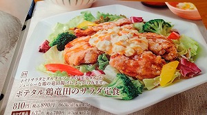 大戸屋の“ポテタル鶏竜田のサラダ定食(890円)”気持ちは“サラダ”→中身はガッツリ“定食”です。不味くなりようのない組み合わせです!美味しゅうございました!