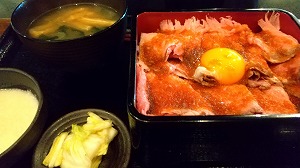 弘前市土手町「DOTECAZI」。夜はダイニングバーのようです。今日はお友達とランチ。感染対策もしており、店内は広々としています。ステーキ重(1200円)は薄目のお肉でピロピロ。阿蘇の赤牛かっ!というくらい赤くてレアです。甘めのタレが美味しい。お友達はローストビーフ重(1000円)。真ん中に卵。なぜかどちらにも“とろろ”の小鉢がついている。“とろろ”冷凍保存もできるし手間いらず。メニューに“牛タン重”もあることだし…店主天才かっ!