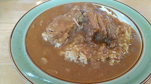 弘前市で40年以上も学生で賑わう、カレーの「かわしま」。土手町にある喫茶店風のお店です。弘前の学生のソウルフードともいわれるくらい有名で、この日も若者でいっぱいです。「かわしま」お初のワタシは、お友達と同じ“カレー定食(1150円)”。凄いボリューム。上に豚バラがのっています。とにかくショッパイ。ショッパイのでご飯はすすむ。辛さは無く“Wホット(超辛)”と注文しないと何を食べているのかわからなくなります。ここは乗せものがチーズフライ・カツ・エビフライ・ホタテフライと豊富なので乗せものを頼んでショッパ味を中和させて食べるのがコツかも。とにかくお年寄りと高血圧の方にはお勧めしません。若者に人気→ボリューミー→味濃い→コスパ良しが体感できます。一度は行ってみたかった「かわしま」。次は“カツカレーのWホット”にチャレンジだっ!
