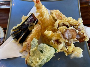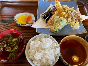 大間のスタッフに会いに行く途中、【ふるさと物産センター】で“天ぷら定食(1,300円)”を注文。時間も遅かったのでお客さんは私一人。揚げてたアッツアツの天ぷらが出てきました♪もう引退した、お店の看板お婆ちゃんの昔話を聞きながら、サクッと美味しくいただきました。