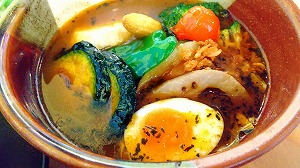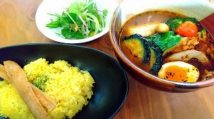 ヒロロの「キャンディスパイス」。“たっぷり野菜カレー(1200円)”をいただきました。ライスの上の長~いのはゴボウの素揚げ。これがイイッ!スープカレーの専門店ですが、このお店の一番は接客!服にカレーが跳ねるんじゃないか…いつもカレーをつけちゃうんだよ…と言っていたら「お使いになりますか?」とさりげなく紙エプロンを持って来てくれました。気配り目配りの良い店員さん。さすが繁盛店!ステキ!