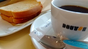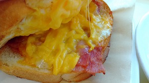 ドトールのモーニング・セット“3種のチーズとベーコンエッグ(398円)”。朝が早いことと、コロナの影響でしょうか、お客様はカップル一組。ガラガラです。パパッと食べて帰るつもりが、アッツアツで猫舌マンは苦戦…。食べている途中で、自宅の台所にホットサンドメーカーが2台もあることを思い出した。クゥ~…次回は自宅で作ります!