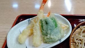「正嵐」で“天ざる(1155円)”をいただきました。天麩羅はウチの母が作るようなシナッと柔らかめ。ピーマンの天麩羅も家庭的ですね。日替わりランチ(900円)も人気のお店です。