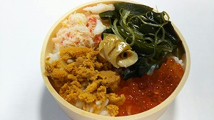 今年は自粛自粛でウニを食べなかったね~と玉ちゃんとの会話。お弁当の蒸しウニでもいいか…「海鮮小わっぱ(1100円)」を買いました。アレッと思ったら吉田屋ではなくて幸福の寿し本舗のお弁当でした。蒸したウニが味がシミシミでお酒のアテになりましたとさっ!