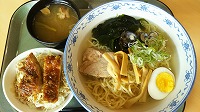 美味しかったんですよ、コレが…。冷たくてチュルチュルっと。塩味で蜆の出汁もほんのり。小鉢のソースかつ丼もちょうど良いご飯の量です。温かい蜆ラーメンしか食べたことがありませんでしたが、“冷やし蜆ラーメン”というのも暑い日には良いものですね。でも、残念なことにこの「冷やし蜆」は弘前市役所食堂の日替わりメニューなので、いつもあるわけではありません。もし当たった時には是非っ!