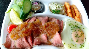 「ヤオハチスパイス」の“ローストビーフ弁当(850円)”が100円引きで750円になっていました。100円引きでも税込になると810円です。あまりお得感もない感じですが、食べてみるとオ・イ・シ・イ!柔らかくてお味もしっかり、ご飯もずっしり!別のメニューも食べたくなりました!