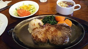 土手町の「ぼんしゃん亭」でお友達とランチ。ランチ本を使うと1650円の定食が1100円になります。ローストビーフ数切れとコロッケ・煮物・粕汁など。小上がりで、まったりできます。