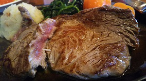 7号線を大鰐を目指して真っ直ぐ。弘前運動公園を過ぎ、平川手前の左側に「シド亭」の建物が見えます。小さなお店なのでお昼時は満席。コックコートにコック帽の腰の曲がったシェフが、慣れた手つきで次々とステーキ肉を摘まんでは焼き、摘まんでは焼き。それをキリッとした細身の黒服のお婆ちゃんが運びます。“ランチステーキ(1300円)”は柔らかい赤身。お醤油ベースのソース。ご飯がすすむ味です。緩めのポテサラと人参のグラッセも、また美味しい。黒電話が未だ現役でリンリンと鳴り響き、昭和感いっぱいの名店でした。(お隣は産直販売のお店「ボン・マルシェ」)
