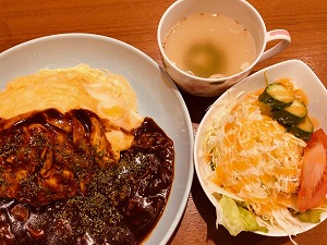 新町キューブ2Fにある喫茶デルヴォ。半熟卵のハヤシライス(サラダ・スープ付)が美味しそうで、前から食べたかった一品!フワフワの卵に包まれた白飯と、お肉もトロトロのハヤシライス。フワトロで、ご飯の量も多めの¥750円。満足満腹のランチでした。