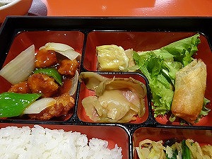 新町で中華と言えば老舗の龍鳳閣!今日は、ランチでお得な中華弁当♪キクラゲと塩味が印象的な上海風焼きそばと、お肉ゴロゴロお野菜シャキシャキの酢豚。春巻きにシュウマイと、これで¥800円(税別)。お昼時は次々にお客さんが入って立ち待ち状態なので、時間をずらすか席予約が確実ですね。