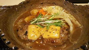 大戸屋の“オニオングラタン・ハンバーグ”単品860円です。名前通りオニオングラタンスープに浸かったハンバーグ。オニオングラタンスープ好きには嬉しいお味。カキフライも単品(800円)でいただきました。なにげにイイお値段だね!ご馳走様!