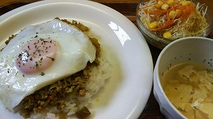 青森市松原の“セブール”でスタッフさんと日替わりランチ。今日は苦手なキーマカレー(700円)の日でしたが、目的はヒアリング…時間もないし。社食だと周りにみんながいるというので外に出てきました。でも、ここも社員さんだらけ。小さな声でお話ししました。