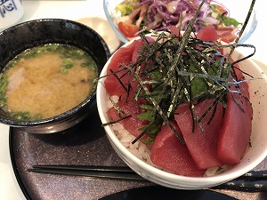 新町通沿いにある“寿司ダイニングJIN”です。鉄火丼セット(990円)をいただきました。マグロがとっても厚く切ってあり、食べ応え十分!セットメニューのサラダもボリュームがあり、エビの頭のみそ汁はダシが濃くて美味しかったです。一面ガラス張りの店内。お洒落な雰囲気で、夜はお酒がすすみそうな感じですね。