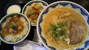東京駅で時間がない時のお勧めは「博多麺房赤のれん」。丸ビルでのランチはどこもかしこも並ぶしお高い。その中で「赤のれん」は早い!安い!さすがの博多ラーメンのお店です。博多ラーメンといえば”とんこつ”。ワタシのトンコツ初体験は福岡で食べた久留米ラーメン「大砲」で、失礼ながら(罰ゲーム?)かと思った…。その後、長浜で「元祖長浜屋」の長浜ラーメンの麺の硬さにアワワ。つまり、注文の仕方も味もわからなかったのです。「赤のれん」では中国人のイケメンさんが流暢な日本語で麺の太さや硬さを聞いてくれます。”ちゃーしゅーあんかけご飯らーめんセット(1080円)”美味しゅうございました!