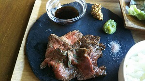 なんかイメージと違うよねぇ~といいながら”ステーキランチ(1000円)”を食べました。弘前市土手町の「ドテカジ」。以前は「びいる亭」があったところです。2階にトントンと上がっていくと、意外に広い。ローストビーフ丼もあるお店なので、「ローストビーフと間違ったのかな?」と思うくらいの薄いお肉が上手に折り重なっていました。美味しかったけどお腹空いちゃったかな。