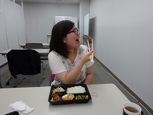 明日からテレビ局のお仕事が決まったので、契約書の取り交わしや稼働前の研修に来社していただいたカナちゃん。ちょうどお昼だったので、一緒に東田のお弁当をいただきました。はじめは少し緊張気味だったカナちゃんも、食事ををしながら色んな話をしたら、帰り際は緊張もほぐれて素敵な笑顔で帰っていきました。顔出しはちょっと恥ずかしいので横顔です(笑)
