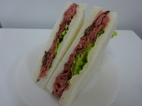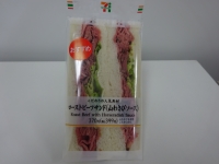 ユカリンです。先日のセブンイレブンの試食会でとても美味しかったローストビーフ。また食べたいなーと思いつつ、お昼ご飯を買おうとセブンイレブンへ寄ると、”ローストビーフサンド(山わさびソース)税込399円”を発見。数量限定と聞いていたので、ラッキーでした♪しっとりしたパンにジューシーなローストビーフがぎっしり。山わさびソースがピリッと効いて、とても美味しかったです。いつものサンドウィッチよりはお値段が張りますが、食べてみる価値アリです!!
