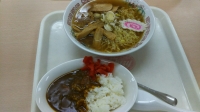 アスパム1Fの「センチュリー」。私は“濃厚焼き干しラーメン”。お友達は“焼き干しラーメン&ミニカレー(750円)”フードコートのようなテーブル椅子なので、学食みたいで懐かしい…。実際に、部活帰りの高校生も多く利用しています。