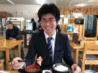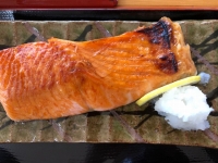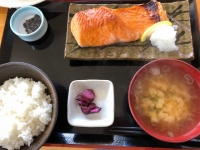 11月から、スタッフ カズ君の派遣先が、大間の大手企業の事務所に決まりました。派遣期間が終わったら直接雇用の道が開けます。事務所所長との面談、職場の雰囲気や寮の見学をさせていただきます。朝から3時間以上車で走って、やっと後一歩で本州最北端の大間崎♪と、その前にお昼も過ぎたので”ばんやめし”でお食事。”焼き魚定食950円”は肉厚のサーモン!焼きたてアツアツのサーモンと白米が良く合って、思い出の一食となりました。