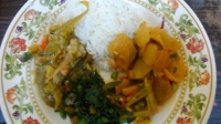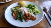今日は「ブータンの社食から」お届けします。JICAのお仕事でブータン王国に行っているお友達からの写真です。左はティンプー(ブータンの首都)にある役所のキャンティーン(食堂)のランチ。ブッフェスタイルで自分で花柄のお皿に取り分けるそうです。白いお皿は、欧米人向けのホテルのレストランでのお食事。コーヒーがついて420ニュータム(約600円)。安いようですが、役所の食堂で食べる一週間分の金額とのことです!お皿の左の緑色はエマダツィ(唐辛子とチーズの煮込み)・左下ホウレン草炒め・右キャベツ炒め・右下ナスのケチャップ味。お野菜が多いです。もともとお肉はヤクの干し肉を食べるくらいらしい。味付けは、塩・チーズ・唐辛子。複雑なマッタリしたソースなどはないそうですが、素朴で美味しそうですね!