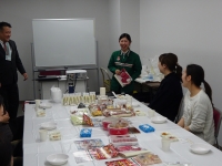 今日はアウルの研修室で「セブンイレブン勉強会」です。企業の方針や企業努力などを説明いただき、見識を広める。また、各企業に派遣されているスタッフさんたちのコミュニケーションの場にもなりました。最初は緊張していた皆さん。オペレーションフィールドカウンセラーの四戸さんの「八戸出身の四戸です!」で、一気になごみました。㈱セブンイレブン・ジャパンの羽山さんのご厚意でたくさん試食もさせていただき、お土産もどっさり!アンケートをとったところ、かまくらケーキ・ローストビーフ・クリスマスチキンが上位に。”ちゃんぽんスープ”もお弁当のお伴に良いと大好評でした!(”つぶやき”にも記事あり)