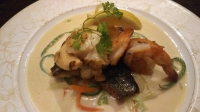 東京からお友達が来ると、和洋中なんでも有りの「志絵扶」へ。”本日の魚とホタテ・エビのポワレ醤油クリームソース(960円)”でワイン。居酒屋なので”カキの味噌バター焼き(590円)”で日本酒も!