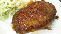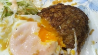 弘前市土手町にある「ラジャコート」。”目玉焼き付きハンバーグ(750円)”を注文。アレレ!目玉焼きが乗っていないと思いきや、まさかのハンバーグの下敷き。下から引っ張り出しました。つくねのタレのようなお味の和風ハンバーグ。ご馳走さまでした!