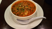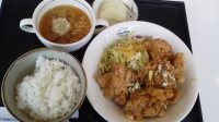 こちらは弘前市文化センター2Fの「サムスィング」の“油淋鶏ランチ”です。スープには焼売が入っています。とろとろに溶けていいお出汁です。