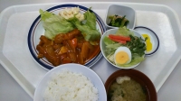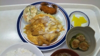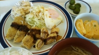 久々の東奥日報社の社食「ひまわり」です。こちらの接客もピカイチ!「○○さん糖尿だから、ご飯は半分ね!」身体の心配までしてくれます。今日の日替わり定食(530円)は“カツ煮”。選べる小鉢は“ピーマンの肉詰め”デリシャス~♪