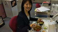 玉ちゃんが焼きそばを食べています。青森は美味しい焼きそばのお店が多いですよね。その中でも東奥日報社の社食の焼きそばは秀逸です。日替わり定食が焼きそばの時はあっという間に売り切れ!定食なのでご飯とみそ汁と小鉢がついてくる。「ご飯はいらないから、大盛りにしてぇ~!」というと“焼きそば大盛り”にしてくれます。これがコツね!