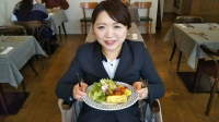 「秋田美人の冬ちゃん!トンカツを食べるの巻」と東奥日報社の社食でふざけています。テレビ局の受付のお仕事がきまってテンションもアゲアゲ!冬ちゃんは甘い卵焼きが好きなんだそうです。私もココの卵焼きは超美味しいと思います!